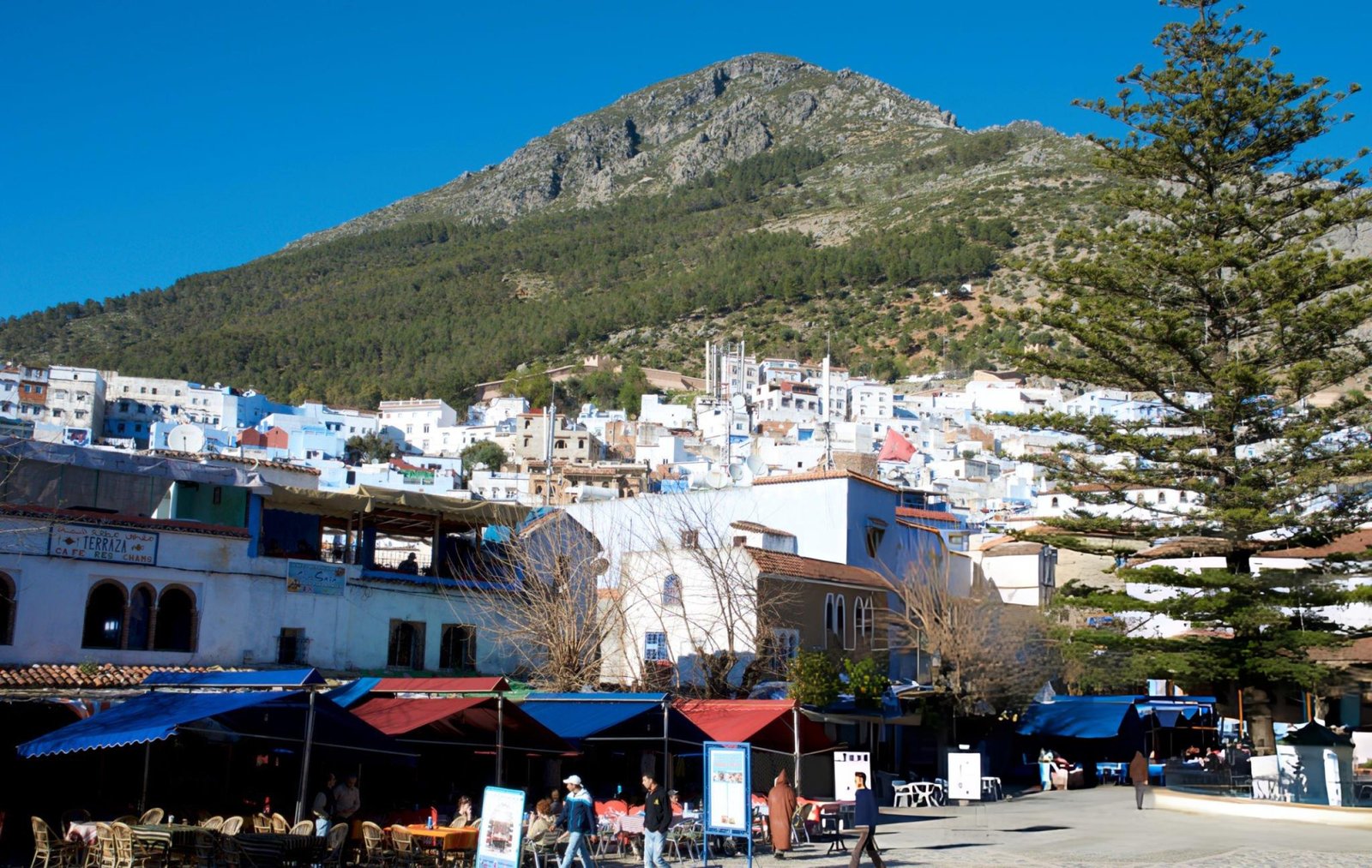 The heart of the old city  a beautiful square surrounded by cafés, the Grand Mosque, and the old kasbah. The perfect place to sit, sip mint tea, and watch Chefchaouen life unfold around you.
